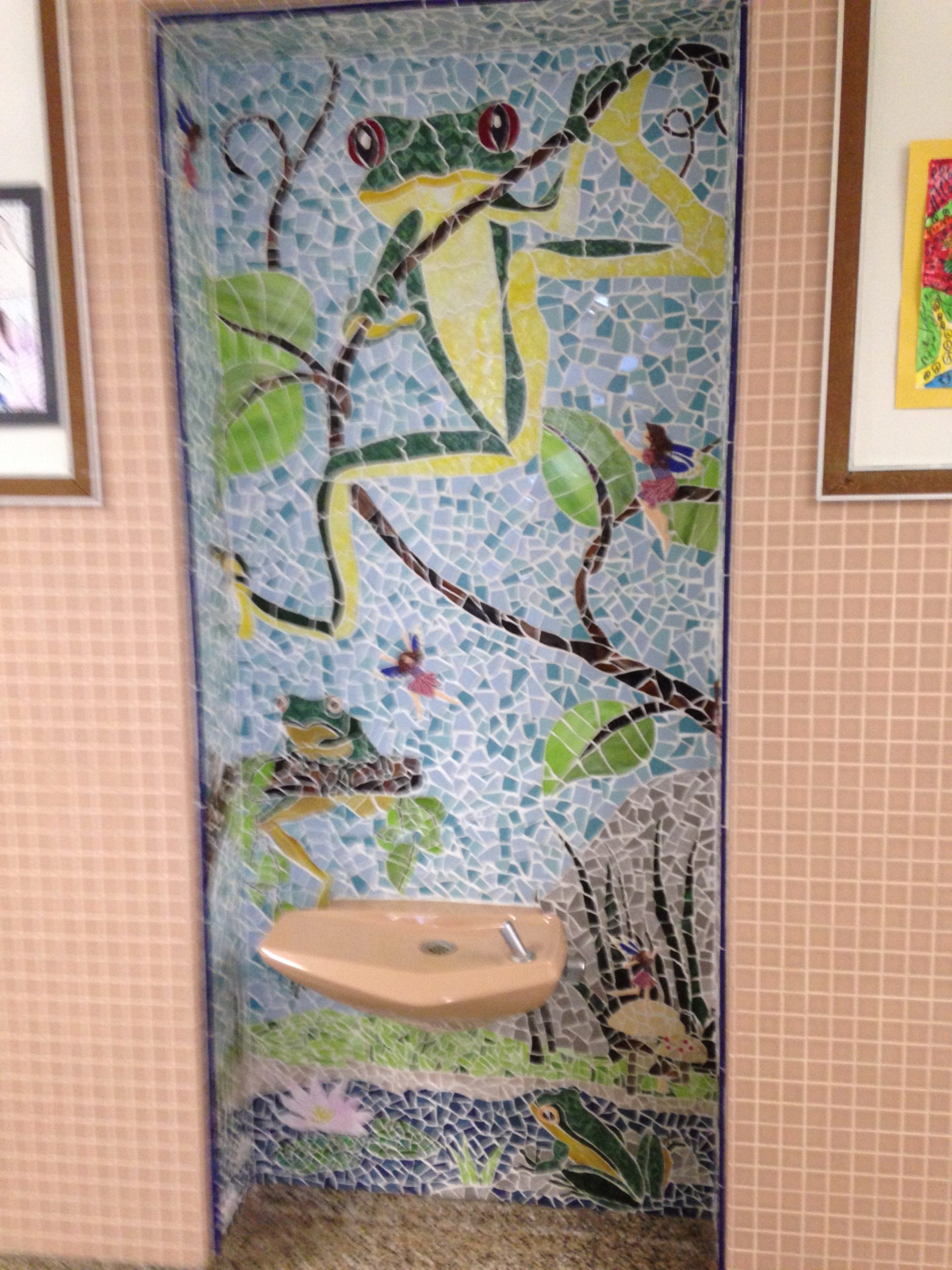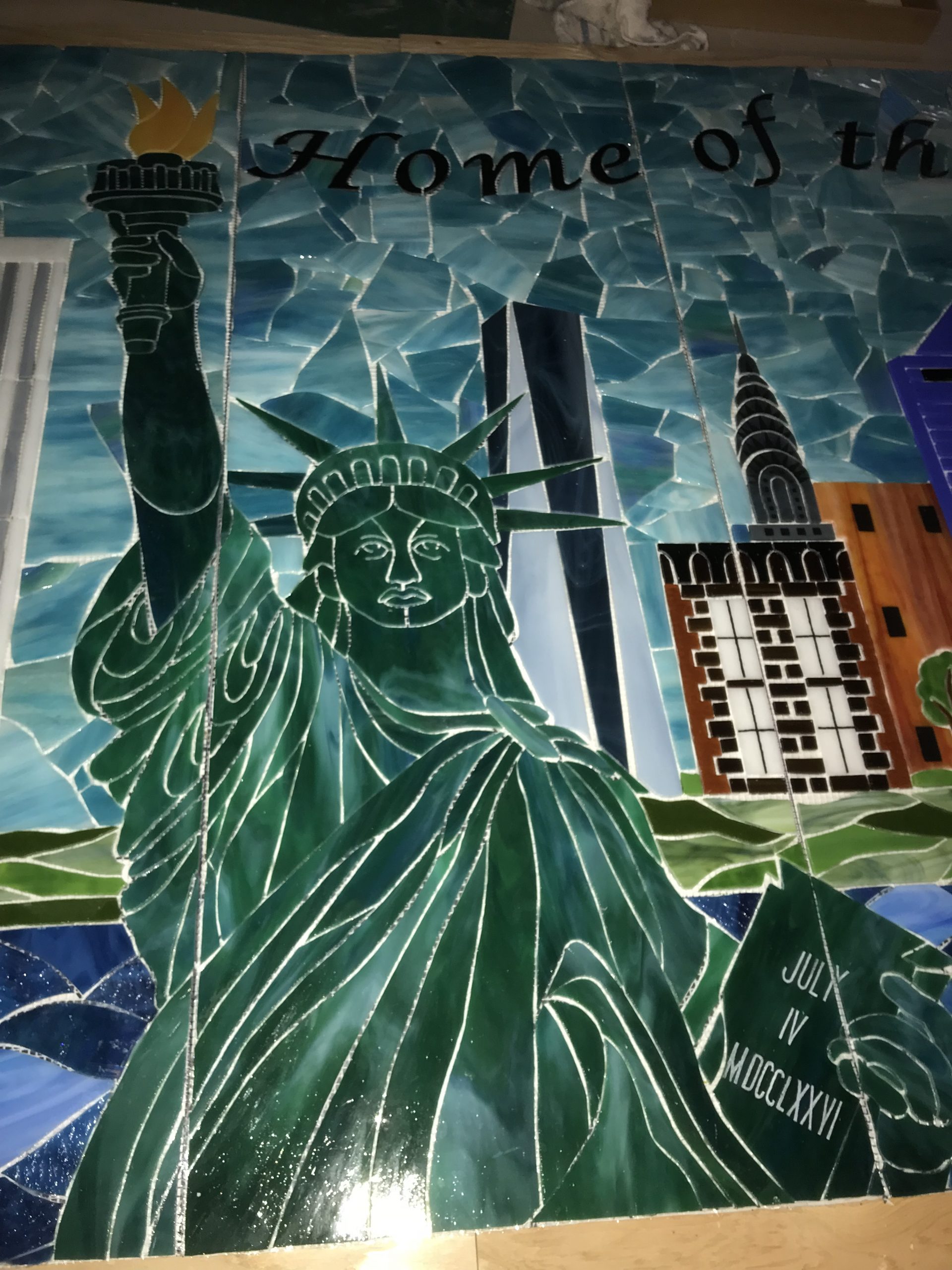Years later I settled back on Long Island where I now had the space to have a studio for both of my passions. I still had my stained glass tools and I was gifted a small kiln so bring on the clay. Mosaics was a natural melding of both mediums for me. I had plenty of glass fragments and clay to make my own tiles.